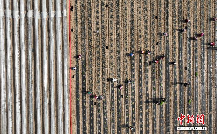 4月5日,宁夏银川市金凤区的黑菜培植基天里,村平易近正闲着田间劳做。指日,肥土镇广袤的旷野上到处看来村平易近抢抓农时、齐力培植黑菜的身影,为丰产播停盼望的种子,让秋日年夜天抖擞勃勃生气。(无人机像片)中新社记者 于晶 摄