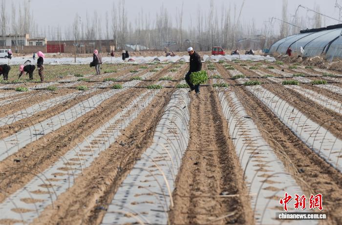 4月5日,宁夏银川市金凤区的黑菜栽种基天里,村平易近正闲着田间劳做。克日,肥土镇广袤的旷野上到处看来村平易近抢抓农时、齐力莳植黑菜的身影,为丰产播停盼望的种子,让秋日年夜天抖擞勃勃生气。中新社记者 于晶 摄